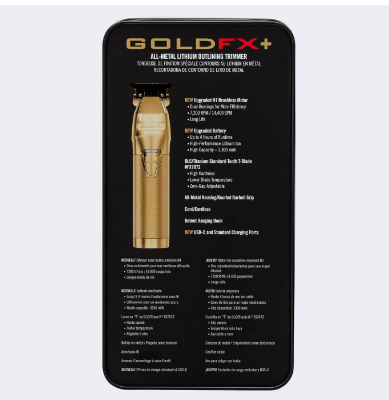 La Trimmer BaBylissPRO Gold FX+ representa la cúspide de la ingeniería en herramientas de contorno profesionales, diseñada meticulosamente para ofrecer un rendimiento y una durabilidad inigualables en el ámbito de la barbería de élite. Esta máquina es una fusión de estética opulenta y funcionalidad avanzada, encarnando un estándar de precisión superior,Su construcción se basa en un chasis robusto completamente metálico, que no solo confiere una sensación de solidez y equilibrio, sino que también garantiza una longevidad excepcional ante el uso intensivo diario. El diseño distintivo de carcasa “skeleton” o expuesta en 360 grados es una característica ergonómica crucial, que proporciona una visibilidad de corte sin precedentes y una maniobrabilidad superior para delinear con la máxima nitidez y detalle.